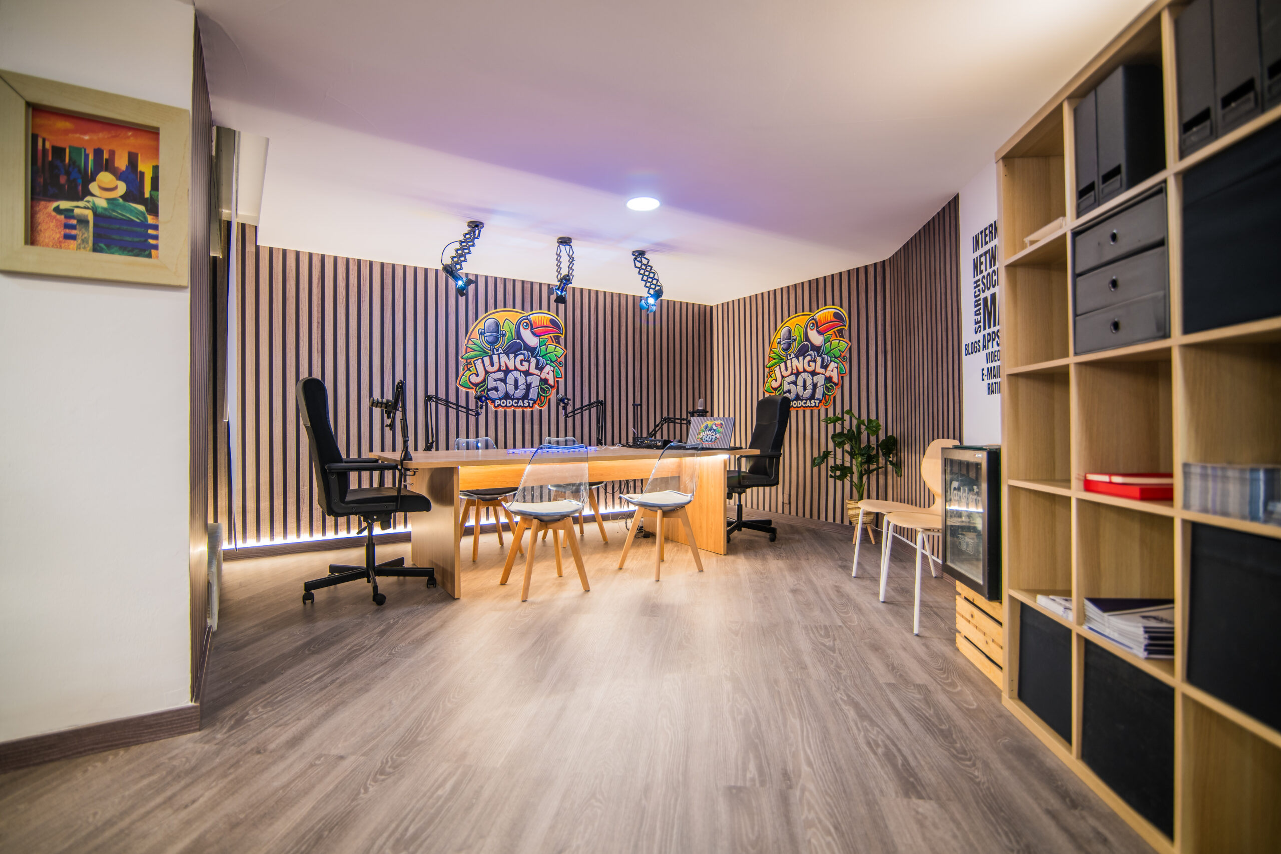 La sala de podcast ofrece un conjunto de instalaciones y equipamiento de última generación que permiten a los creadores de contenido producir audio y video de alta calidad. Este entorno profesional facilita la creatividad y el aprendizaje en el ámbito del podcasting.
